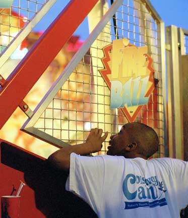 Fairgrounds are mainly for kids, and this young man’s expression was one of total absorption and excitement. The fact that he is so animated and has the sign which says‚Fire Ball ‚ pointing right at the top of his head, has a mildly ironic element.