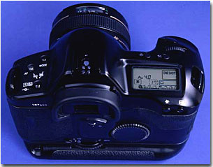 Optional Power Booster Drive E1 or Battery Pack BP-E1 attach to the bottom of the camera, forming a nearly seamless union. Unlike some other cameras, one has to look very closely to see that they¹re actually two separate pieces. The pieces join together not only in a cosmetically pleasing fashion, but also in a mechanically solid manner, making the combination rock solid and wobble free when attached to a tripod. As trivial as this may sound, this virtue was a welcome relief over my previous equipment. I use the BP-E1 battery pack exclusively with my 1n as it provides two independent power sources for the camera; a 2CR5 lithium battery in the grip and four double-A batteries in the pack. A switch on the bottom of the pack allows fast and convenient switching between the two power sources, ensuring I¹ll never lose a shot due to depleted batteries. I keep the pack loaded with NiMH double-A rechargeable batteries. I¹ve owned the camera for nearly 3 years and have yet to replace the 2CR5 lithium that I use strictly as a back up.