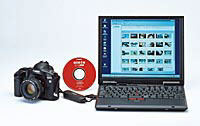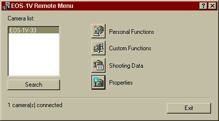 The ES-E1 package for the Canon EOS-1V comes with a CD ROM and a proprietary cable. You should note that this softwareonlyworks withWindows 98based machines. (There is currently noMacsoftware but there are rumours that it is under development). The cable has a USB connector on one end and a Canon remote plug on the other.