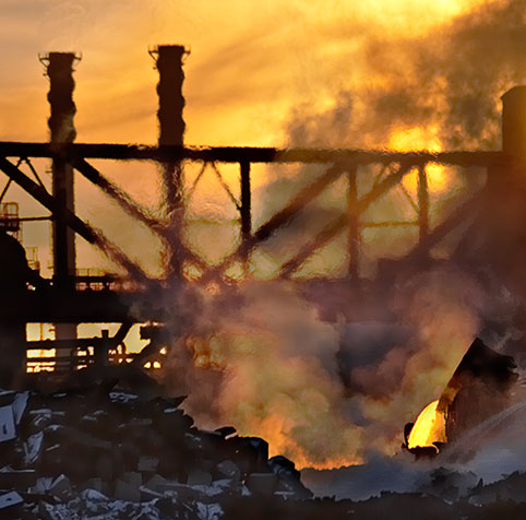 As luck would have it, just as the warm light of sunset was at its peak, they began to pour slag. It only lasted for a few seconds, but I was able to capture this dynamic moment.