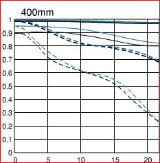 As one might expect the 100-400mm zoom sharpens up quite a bit when closed down 2 stops, but at f/11 still isn’t as sharp as the 400mm prime at f/5.6. Most interestingly the 400mm prime only shows the slightest improvement when going from f/5.6 to f/11. This is typically the mark of an excellent lens and is seen in Canon’s 300mm, 400mm, 500mm and 600mm wide aperture super-telephotos, which typically test the same from wide open to closed down. The flat MTF charts do indeed tell the tale.