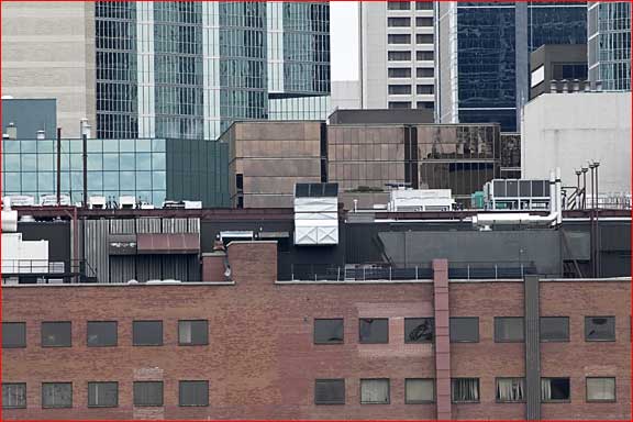 The frame immediately below shows the subject of the test, a cityscape with lots of fine detail. The day was overcast, which was a good thing because it allowed me to test these lenses against each other in a demanding low contrast situation. The frames were taken with a Canon 1Ds at ISO 400. This allowed for high shutter speeds, which when combined with a solid tripod mount ensured that there was no vibration likely to obscure the results.