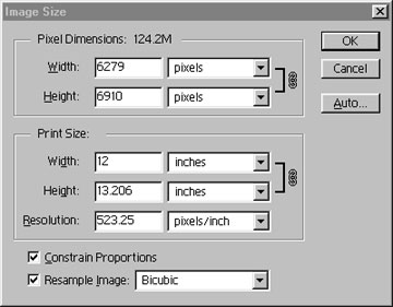 Be sure that you don’t change the image resolution by Resizing when you change the image size for printing‚¯ particularly before you save the file. Always save the file in its original scanned resolution. You can then, of course, change the resolution to match the size of your print. Almost all ink-jet printers want a file of at least 240 dpi. If you’re making smaller files for the web or for small prints then go ahead and change the resolution‚ just be sure to save an archival version first.