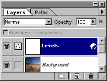 Most importantly you can recall the histogram and tools at any time by double clicking on theLevelslayer in the palette selector. With the Levels Histogram displayed again you can make further changes. You can also create another new Levels layer and make additional changes to it. This can be convenient when you want to see what such changes will do without disturbing what you¹ve already done in the previous Levels adjustment layer. Pretty cool, huh?