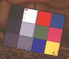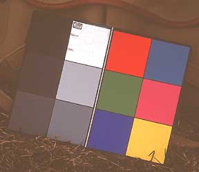 Look at the light and medium gray squares for any colour casts and at the black square to judge contrast rendition.