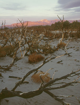 This spot near Desert Hot Springs is just a short drive away from the Park. A fire a few years before has left these burnt branches which stand in stark contrast to the warmly lit San Bernardino Mountains in the background.