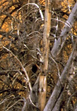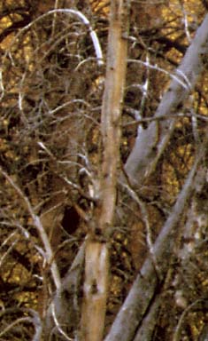 These very large blow-ups were made by scanning the actual prints at 1000dpi on an Agfa Duoscan. The section is taken from the area in the left third of the image above where the group of fallen tress is leaning against one still standing. It is at “actual pixel” resolution, so while it’s already very large a bigger blow-up would only show pixelation not detail.