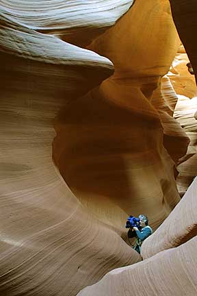 I’ve included this shot of my friend and colleague Chris Sanderson as well as one of me, taken by Steve Kossack, to help you understand the scale of Lower Antelope Canyon.