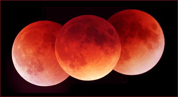 A lunar eclipse happens when the moon passes into the shadow of the earth. This makes the moon grow dark, and only sunlight filtered though our atmosphere reaches the moon and illuminates it with a ruddy crimson glow. It is a strikingly beautiful sight. The last time I saw one was in 1989 and I still remember it vividly.