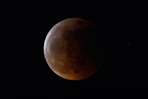 If you look closely at theenlarged versionyou’ll see that the star to the right of the moon isslightlyelongated for this reason. But the image of the moon still retains much of its sharpness, and I consider the shot successful as a record of the event.