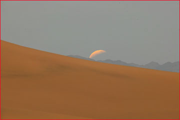 In the early spring of 2003 I read inAstronomymagazine that there would be a lunar eclipse in mid-May. Since I’m a bit of an astronomy buff I found this of interest, but it wasn’t until I came to the place in the article that the timing was discussed that my interest really became piqued. I saw that the eclipse would be visible from the west coast of North America at sunset on the 15th. I realized that I would be able to shoot the moon risingwhile it was in eclipse,and with the foreground landscape still illuminated by sunset glow — a terrific photographic opportunity. The questions then was — exactly where to shoot it from, with what equipment, and how to ensure clear skies?