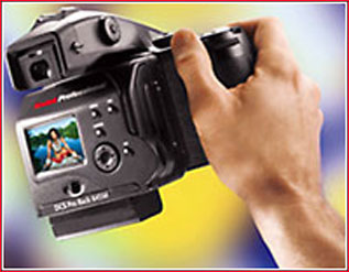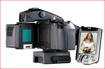 But, the medium format back makers were not going to see their livelihoods evaporate, and they proceeded to develop and introduce larger and higher resolution backs. Many medium format camera makers though were left sitting with their thumbs buried in their butts. The only exception to this was Hasselblad with itsH1camera. Designed from the start as a digital hybrid, Hasselblad worked closely with both Kodak and Imacon to ensure that the H1 worked seamlessly with both theKodak DCS Pro Backand theImacon Ixpress. The only problem for Hasselblad is that the newly introduced H1 camera is priced at double what the competition (such as Contax and Mamiya) sell for, not a marketing approach likely to lead to brisk sales. But, that’s another talk show.