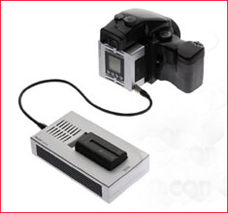 The Kodak back is the most portable medium format back available, consisting of a completely integrated unit that includes LCD screen for image review as well as system settings. A removable Lithium Ion battery is also part of the all-in-one unit. Special models are available for the Mamiya 545 AF, the Contax 645 AF and the Hasselblad H1. (ThePro Back Plusis similar and is available for other medium and large format cameras).