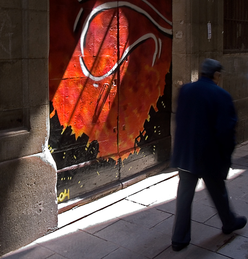 Walking Past the Red Door — Barcelona, Spain. April, 2004