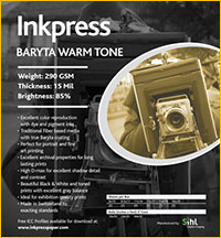 Inkpressis a brand that has been around for a while. They are not a paper marker, but rather a company that sources papers from well known mills around the world. One of their more recent offerings isInkpress Baryta Warm Tone, fromSihlin Germany.