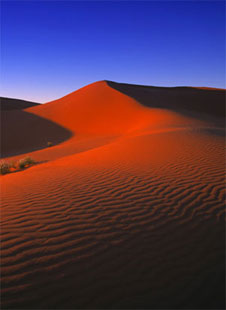 This kind of deep red sand dune is considered a part of the quintessential ‘Australian Outback’. Unfortunately, completely bare red dunes like these are very hard to find, most are covered in light scrub which spoils the fantastic sweeping forms and shapes. This spot is about 150miles south of Birdsville on the eastern fringes of the remote Simpson Desert. This is one of the most isolated parts of the Outback and I travel in a fully self-contained Toyota Landcruiser complete with long range radio, water tanks, tools etcƒâ€˜ just in case.