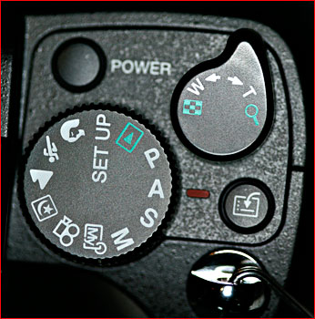 The shooting Mode dial on the C-8080 is almost flush with the top right-hand surface of the camera. Too much so. Because of its low profile it is somewhat difficult to turn with bare fingers, and almost impossible with gloves on. This design flaw is compounded by the fact that the Power button is located right next to it, and almost flush with the top surface of the camera. I found that nearly 100% of the time, when I went to turn the Mode dial I would accidentally press the Power button. Ones index finger is almost forced into that position to avoid the raised zoom lever that is right next to it. (My fingers are actually on the small side, so that’s not the source of the problem).
