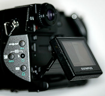 The C-8080 has a very smoothly rounded and elegant design, similar in many ways to its big brother theE-1. Material quality is first rate, and the texture and shape of the grip are almost perfect. The shutter release is properly located and has a firm but progressive action. The camera is small (possible, as will be seen,toosmall), but hefty.