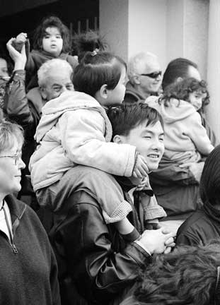 The things to look for in photographing a parade, as with any other type of street photography, arecontrasts,juxtapositionsandirony. Yes, the floats are cute and the marches colourful, but the real interest is the people watching the parade.