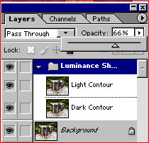 InFigure 2above you see the layers palette for a simpleLuminance Sharpenaction. ALayer Sethas been created and the opacity defaults to 66%, allowing you to alter the intensity both upward and downward. Also, each of theLight ContourandDark Contoursub-layers similarly can have its opacity adjusted, allowing for a very high level of control over any undesirable black or white halo effects that might occur.