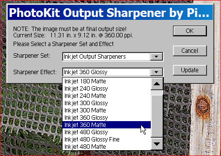 Before showing you what the output for a 360 ppi print on matter paper looks like, read whatBruce Fraser, one of the program’s designers has to say aboutOutput Sharpening.