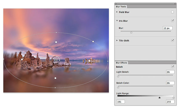 Of the three blur options in the gallery my favorite is the iris blur. The two others are interesting but do not offer as many options or possibilities. The Iris blur lets you control the diameter of the blurred area together with the amount of blur applied to the photograph, making it easy to control the final effect.