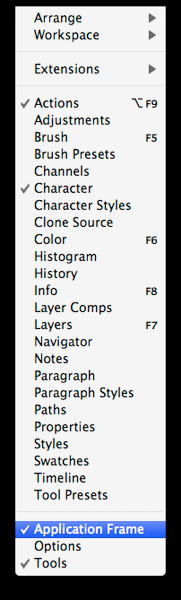 Sometimes, when you open a photograph, the image window looks very small and tiny. If this happens, fixing it is easy: just go to window>application frame and uncheck application frame: