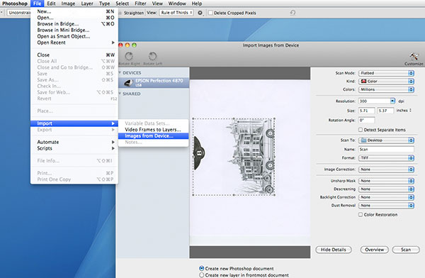 Once a 64 bit scanner driver is installed, doing File>Import>Images from device