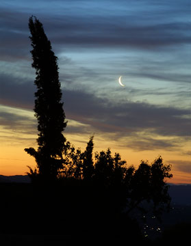 Just a month after the Florida photograph above was taken I was vacationing in Italy. Again, on the flight over a glance atEphemerisshowed that on the morning of the 20th a crescent moon would be rising about an hour before sunrise.