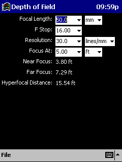 DOFis simple little program that allows you to enter the known variables and instantly determine where to focus your camera, what the near and far focus points are, and thehyperfocal distance(the point at which infinity will be in focus).
