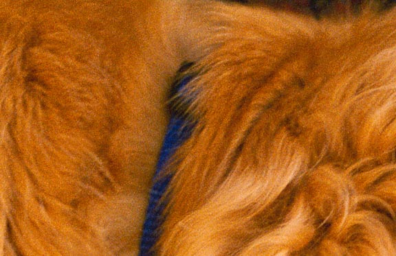 What I can deduce from this is that the scanner will do quite a good job with colour negative film without too much tweaking. The enlargement, like the one of the birds above, shows excellent detail – particularly in the blue collar. There is good colour depth and shadow detail in the dark patterned rug. It does seem to me though that there is more grain on Gold 100 than in Provia 100. Also, as I have experienced in the past with the Nikon LS1000, scans of colour negatives show more flaws, (spots, micro-scratches and other minor defects) than do transparency films. This means quite a bit more work doing digital "spotting". Photographers working with colour negative film should find the Polaroid 4000 more than satisfactory.