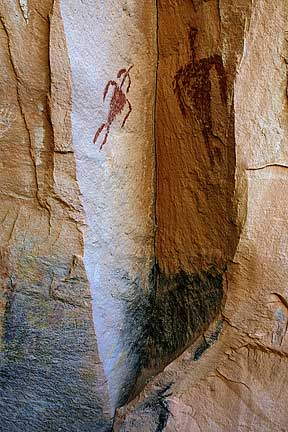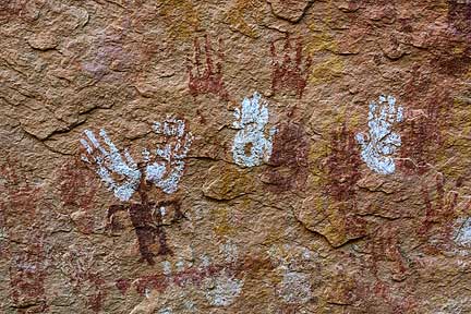 I’m fascinated by Rock Art as it’s commonly called. I had first seen an example in Canyonlands National Park on a shoot there in January, 2000 at Newspaper Rock. That is an example of a petroglyph, where the image has been cut or scratched into the rock. Much rarer arepictographs, as seen here, where the images have actually been painted on using mineral dyes.