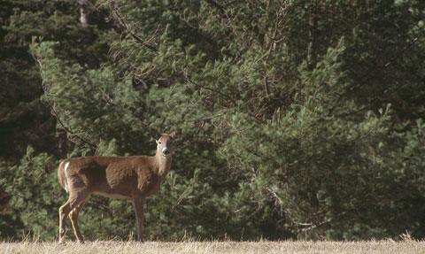 On one afternoon we saw at least 8 deer during a 3 hour period. This young doe was kind enough to pose for me while I braced myself on the hood of the car and hand-held the shot at 400mm.
