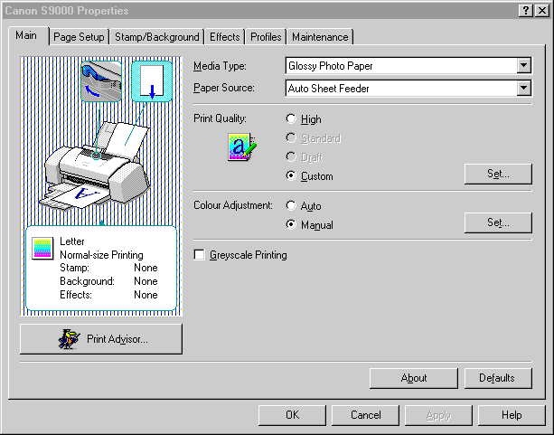 I won’t provide a laundry list of specs. You can find theseelsewhereif you need them. The short story is that theS9000will make A3+ / 13" X 19" prints at a resolution of 2400 X 1200 ppi. It features a user-replaceable print head and 4 picoliter droplet size. Drivers are provided for Windows 98 / ME / 2000 and XP. Mac users will have drivers for OS 8.6-9.x as well as OS X. All the bases are covered.