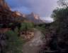 This photo of The Watchman in Zion National Park was taken from the auto bridge near the park entrance at Sunset on the first day of the trip. The light was changing constantly and I was lucky to find a magic moment when the face of the mountain was illuminated against the dark storm clouds. Pentax 6×7 55mm lens.