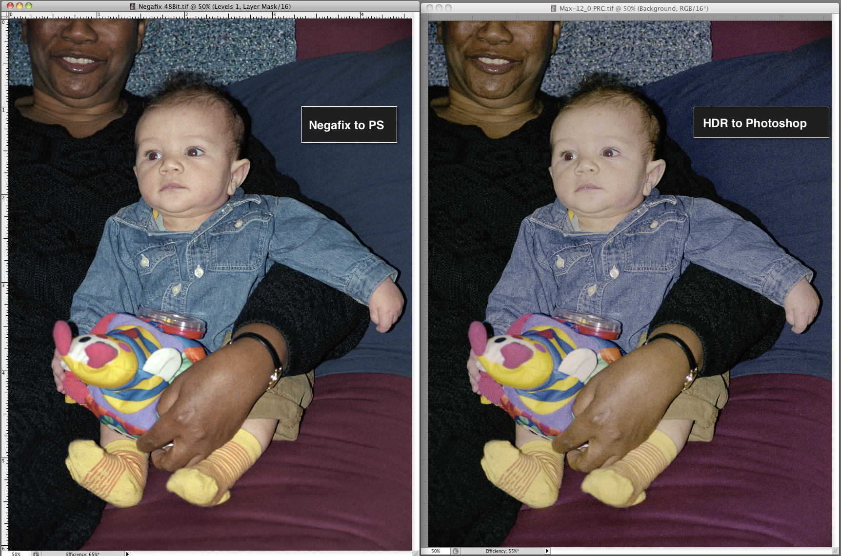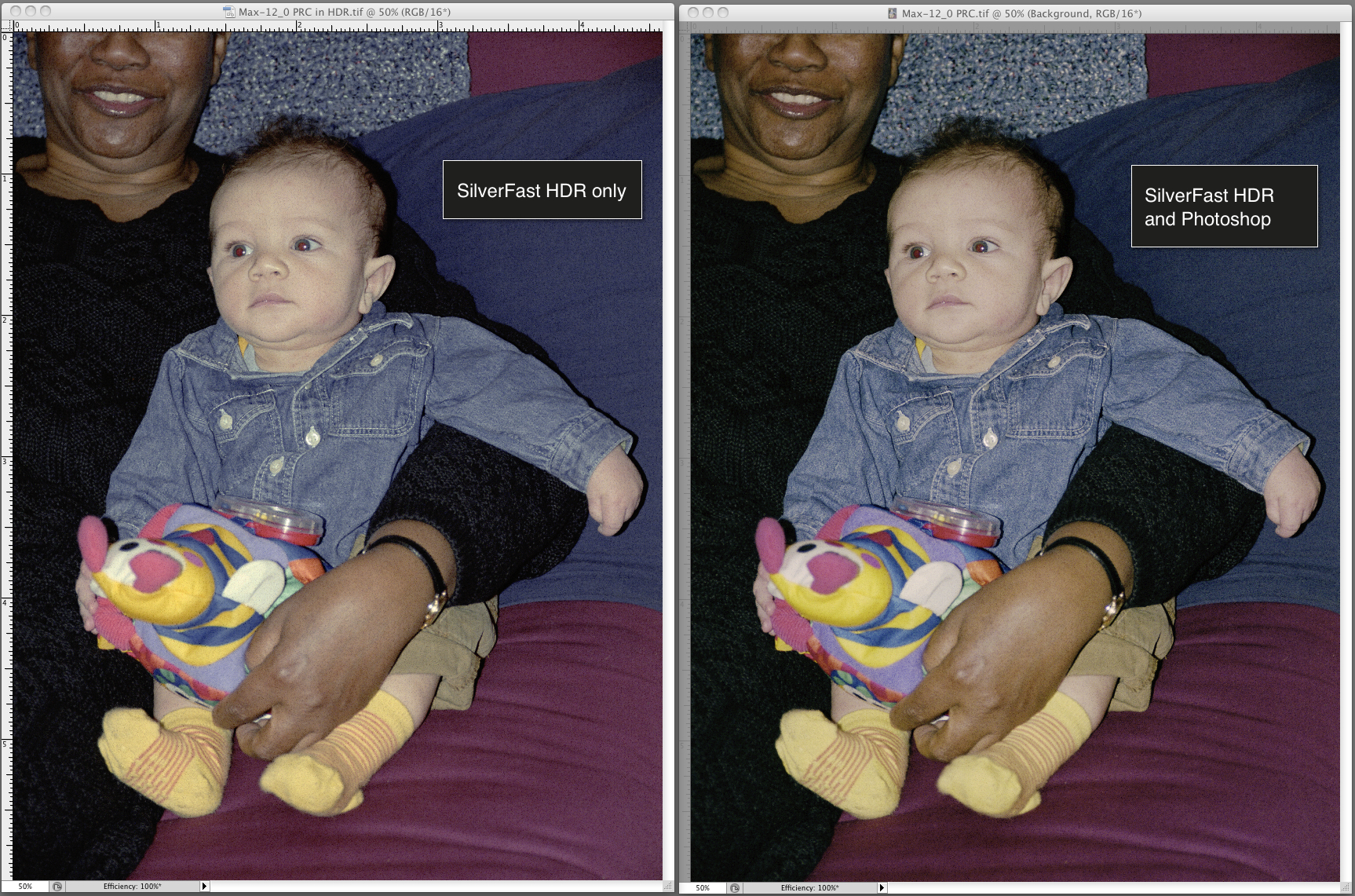 You can see from Figure 10 that these two Stage 3 alternatives can produce very similar results. I only converged them enough to see that with more time and fiddling, I could get them very close indeed. A possible advantage of doing this work in SilverFast HDR is that you may save storage space, because the processed image is a 16-bit per channel TIFF with no layers. As well, if you don’t like what you did, you can revert to SilverFast HDR and re-adjust it as much and as often as you like without rescanning it. As long as you revert to the original scan from the SilverFast VLT, you may rework the image starting from settings saved for that image in SilverFast HDR, safe enough from visible information loss in a 48-bit image scan.