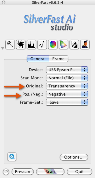 (2) In SilverFast Ai, General Tab, configure the job as a Negative Transparency scan, (Figure 1).