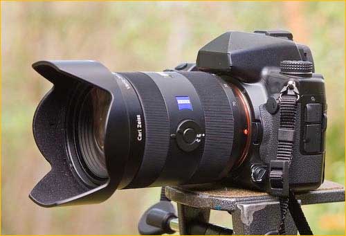 In the hand the camera seemed at first a bit unbalanced, the optional grip would have helped a great deal. Since some of the Zeiss lenses are quite ‘fast’ they are necessarily large; the 24-70/2.8 ZA is a big heavy beast at roughly 1000g and this makes the camera very front heavy. Having said that it’s no different to the Canon 24-70/2.8 on a 5D – a big lens on a small body will always be unbalanced.