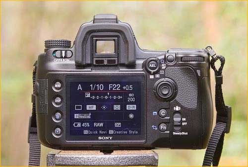 So, where to begin? Well, the camera itself seems almost identical to the A700, at least on the outside. Buttons are pretty much in the same place and the overall build quality is very similar. Buttons are weather sealed, the magnesium alloy body is quite light at 850g and the overall impression is of a competent layout. I found that a couple of the buttons were slightly awkward to get at and some are hard to find by touch alone but in general it was an easy camera to use straight out of the box, which is always a good sign.