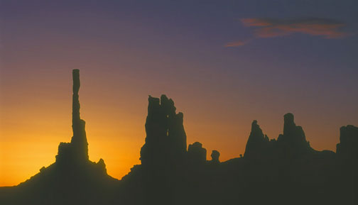 My cliché shot of a‚³Totem Pole² sunrise. I decided to crop relatively tightly on craggy silhouette keeping the small cloud to add balance to the image.