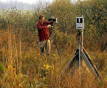 Well known Leica street shooterJohn Brownlowis also an enthusiastic large format photographer. He is seen here working with his 40 year oldGraflex Super Graphicin Prince Edward County, Ontario