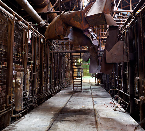 On this particular day I had wandered around the far end of one of the buildings, up a muddy trail, and came across a spot where there was an open doorway leading into the main building. No signs. No barriers. With much curiosity and not a little trepidation I entered the building.
