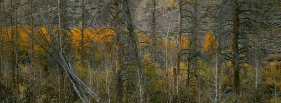 Route 168 in the Eastern Sierras is one of the great roads in California for fall colour. I found the contrast between the foreground dead trees and the aspens in the background very appealing. A 18″ wide print from this XPan transparency, shot with the 90mm lens, is astonishing in its detail.