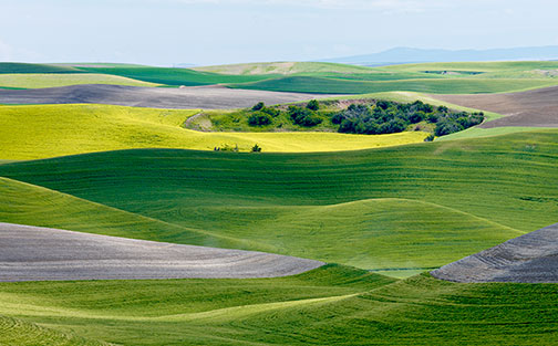 The most striking visual aspect of The Palouse is its rolling hills, with various crops planted in swirling patterns. Combine this with dappled sunlight (which we were fortunate enough to have during our shoot) and the landscape almost comes alive with texture, colour and sensuous shapes.