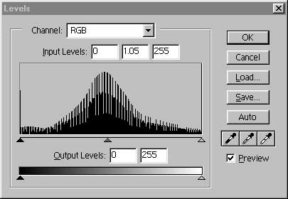 The second downside is that Photoshop is limited in what functions are available when working with 32 or 48 bit images. The most important of these limitations is the inability to utilize Adjustment Layers. If you’ve read my tutorial Instant Photoshop you know that I regard Adjustment Layers as vital to effective workflow. You should use Levels or Curves on your high-bit images and then when these basic adjustments are done convert the file to 8 bit using Image / Mode / 8 bits/channel and do the rest of your image processing in that mode.