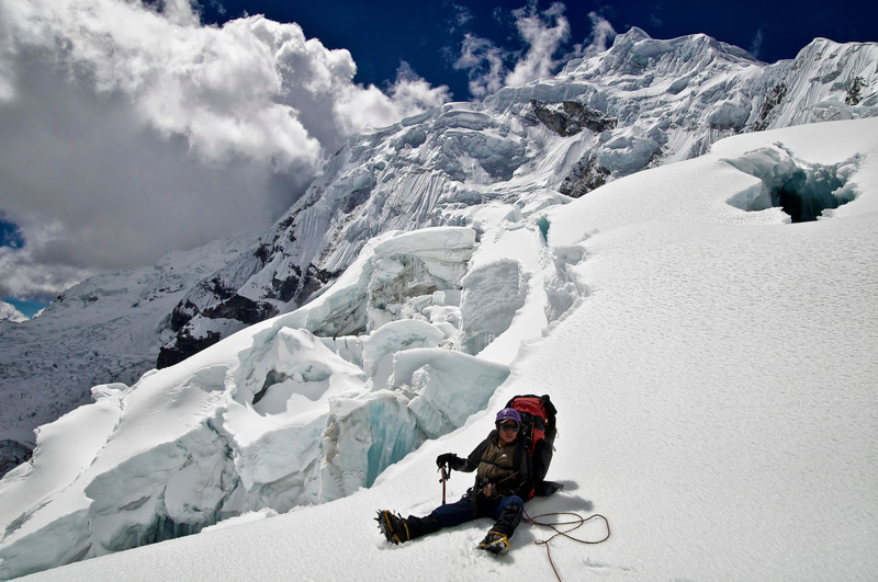 Taking a rest on the way to Chopicalqui high camp.