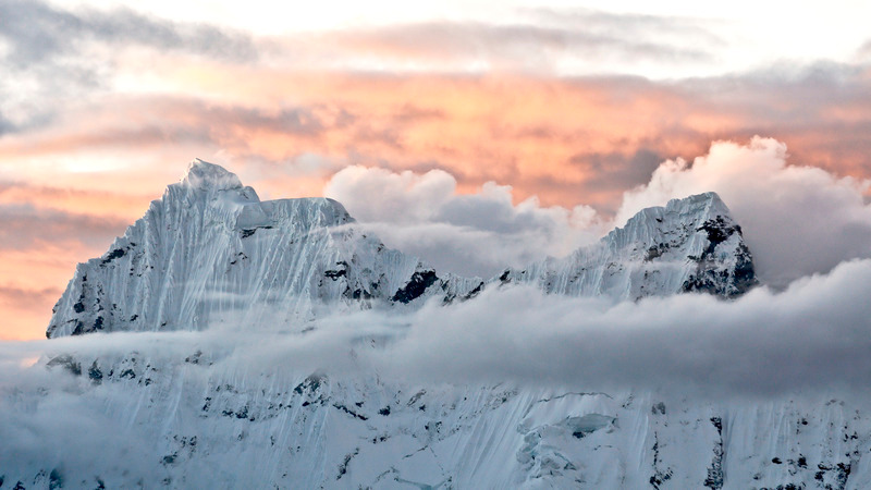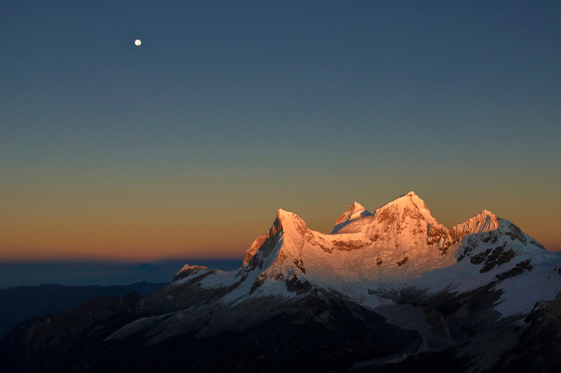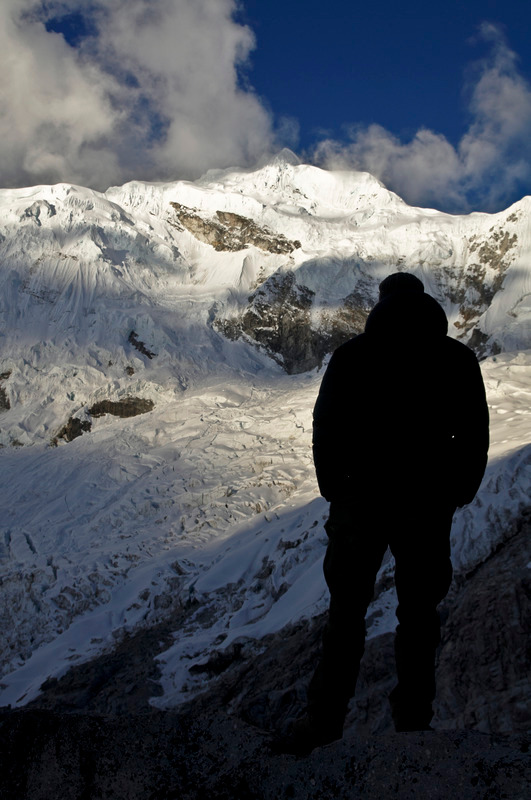 Here, Nevado Chacraraju seen from Chopicalqui moraine camp.
