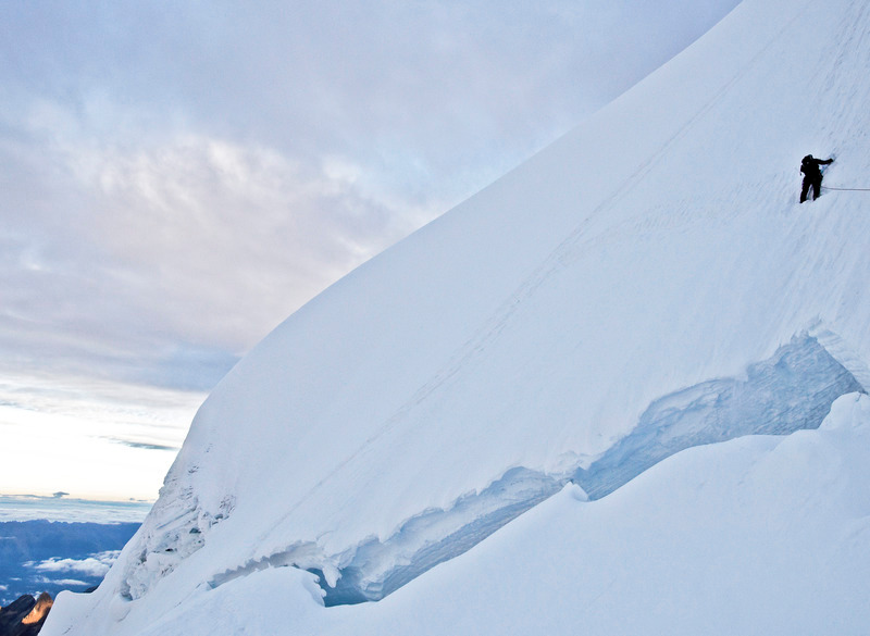 It’s all about perspective. Descending Chopicalqui’s summit mushroom.