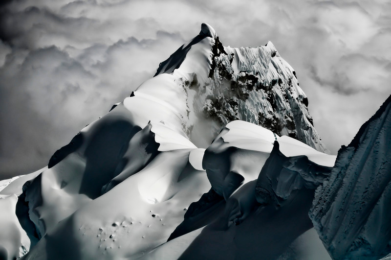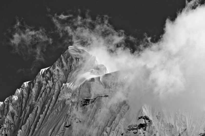 Light in the mountains is often very harsh, especially as altitude increases, as every climber who forgot to wear his protective sunglasses learned quickly. Snow is as reflective as things get, and there tends to be a lot of it. Add to the mix luminous clouds and dark patches of rock, and you have a perfect recipe for blowing out the dynamic range of any camera. For that reason, special care should be given to getting a correct exposure of every image – sometimes not an easy task.