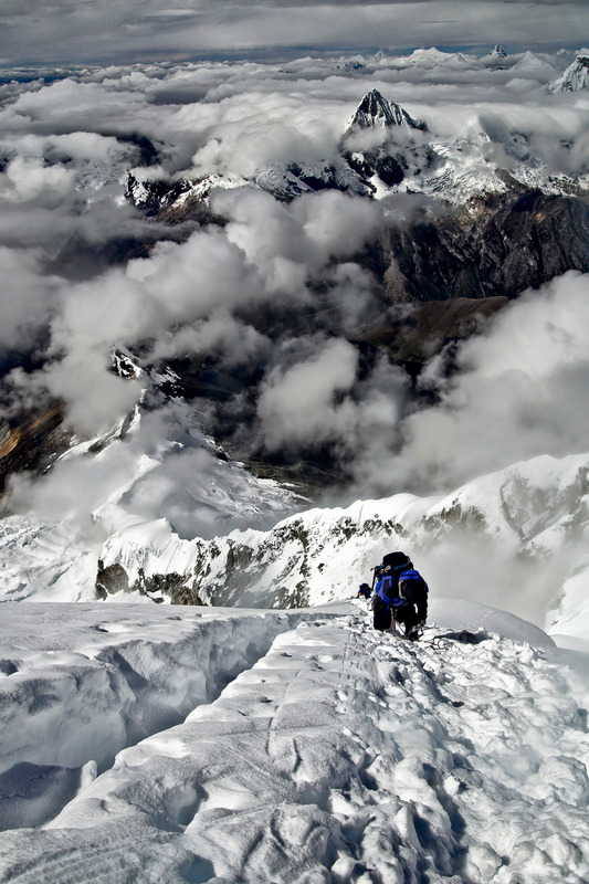 Here, downclimbing Chopicalqui after 12 hours of summit push.